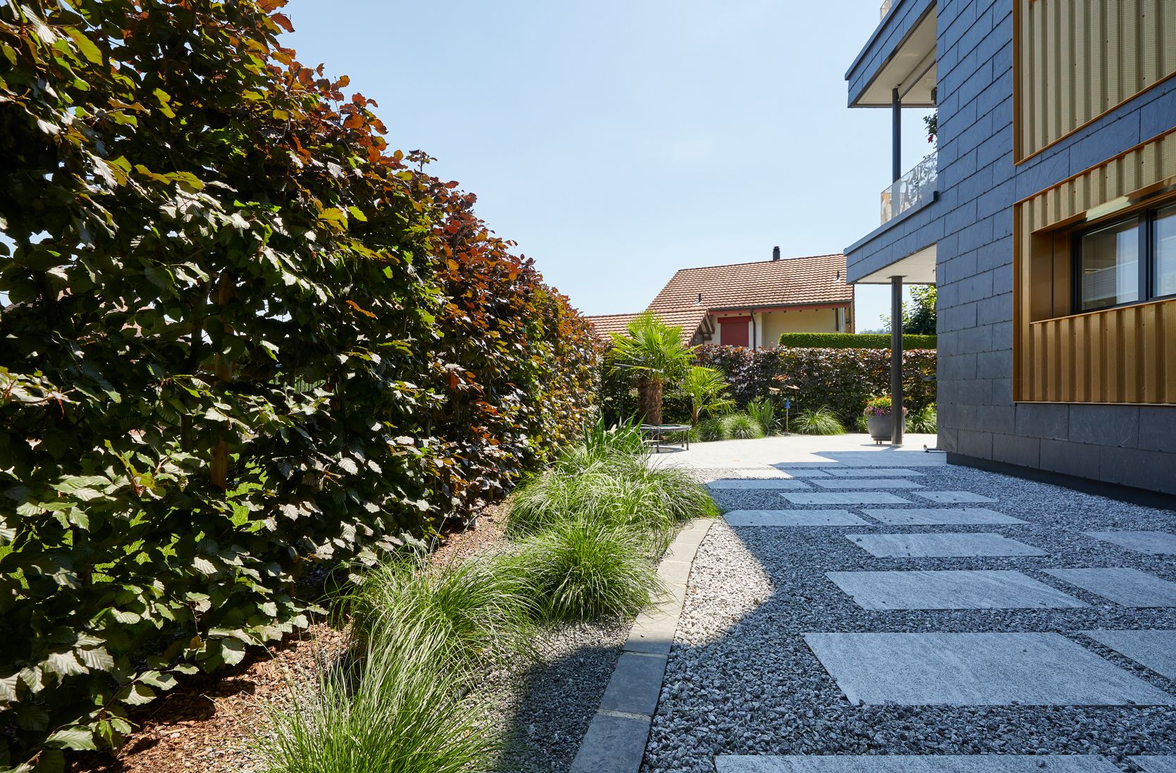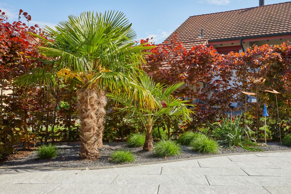 Bei Schoop setzen wir auf moderne Technologie. Tropfbewässerung bringt Wasser direkt an die Wurzeln und arbeitet mit einer Effizienz von etwa 90 Prozent – deutlich besser als herkömmliche Sprinkler mit rund 75 Prozent. Für Rasenflächen eignen sich dagegen Sprinkleranlagen, die gleichmässig und zeitsparend arbeiten. Beide Systeme können wir automatisieren: mit Regensensoren, Zeitschaltuhren, Bodenfeuchtigkeitssensoren oder Steuerung per App. So bewässert Ihr Garten zur optimalen Tageszeit – auch wenn Sie in den Ferien sind.