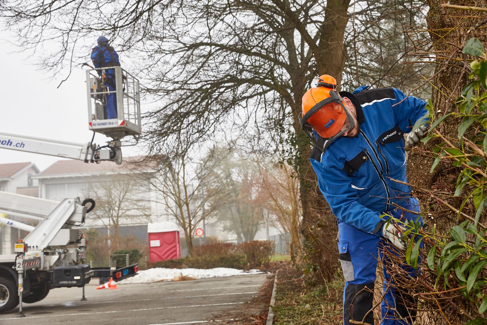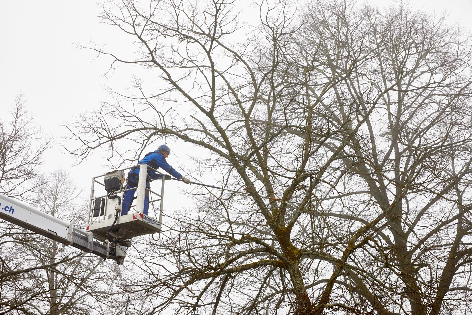 Mit moderner Ausrüstung und erfahrenen Mitarbeitenden sind wir bestens gerüstet für jede Herausforderung. Ob Hebebühne für hohe Bäume, Spezialwerkzeug für präzise Schnitte oder sichere Fälltechnik – bei uns ist alles aus einer Hand.