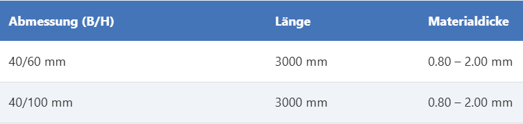 Sondermasse auf Anfrage. Wir fertigen auch projektspezifische Lösungen.