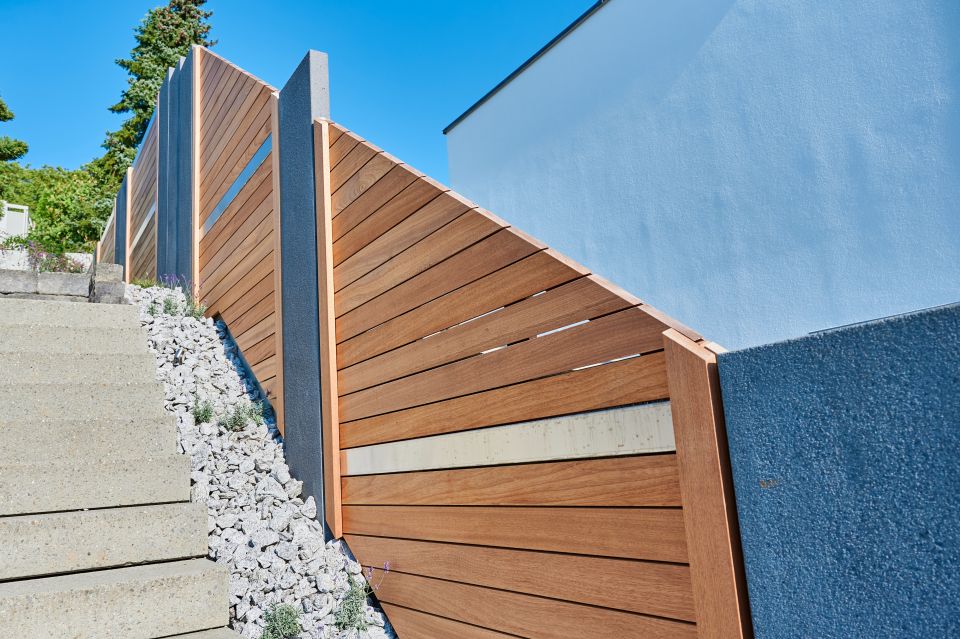 Moderne WPC-Elemente (Holz-Kunststoff-Gemisch) sind pflegeleicht und wetterbeständig.