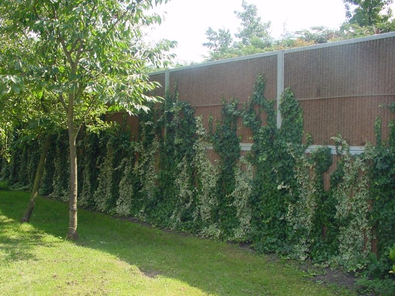 Bei Schoop bepflanzen wir Lärmschutzwände auf Wunsch direkt bei der Installation. Bewährt haben sich Kletterpflanzen wie Efeu (immergrün, pflegeleicht), Clematis (blühend, dekorativ), Geissblatt (duftend) oder Wilder Wein (schöne Herbstfärbung). Wir beraten Sie gerne zur Bepflanzung Ihrer Lärmschutzwand.